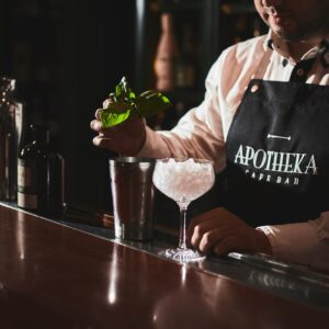 Originální receptury inspirované apatykařskou tradicí i moderní mixologií. Naše signature cocktaily se navíc pravidelně obměňují v sezónním menu, takže při každé návštěvě objevíte nové chutě a kombinace.